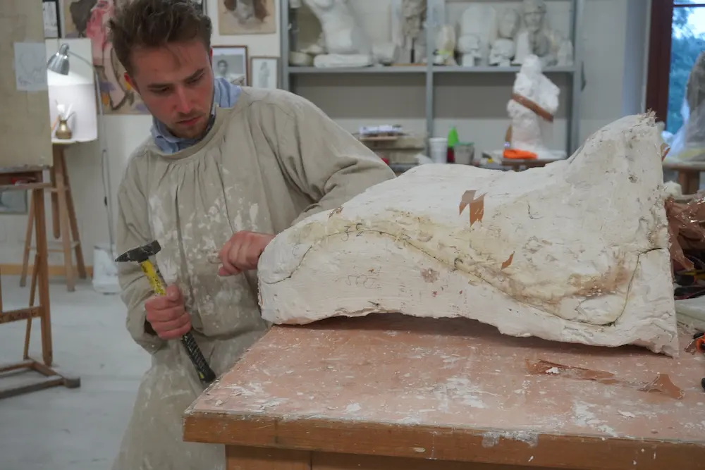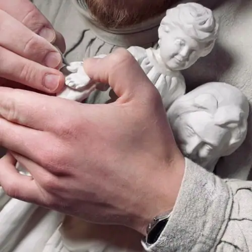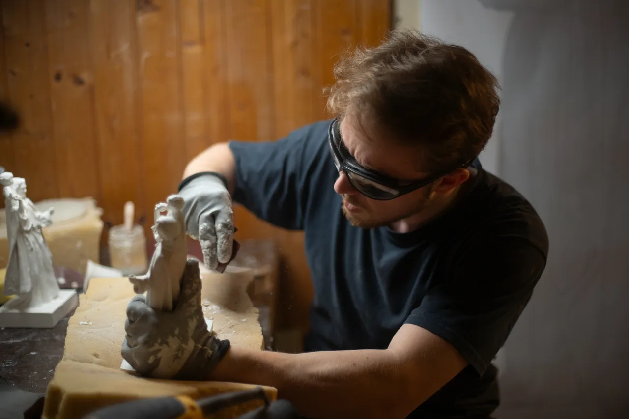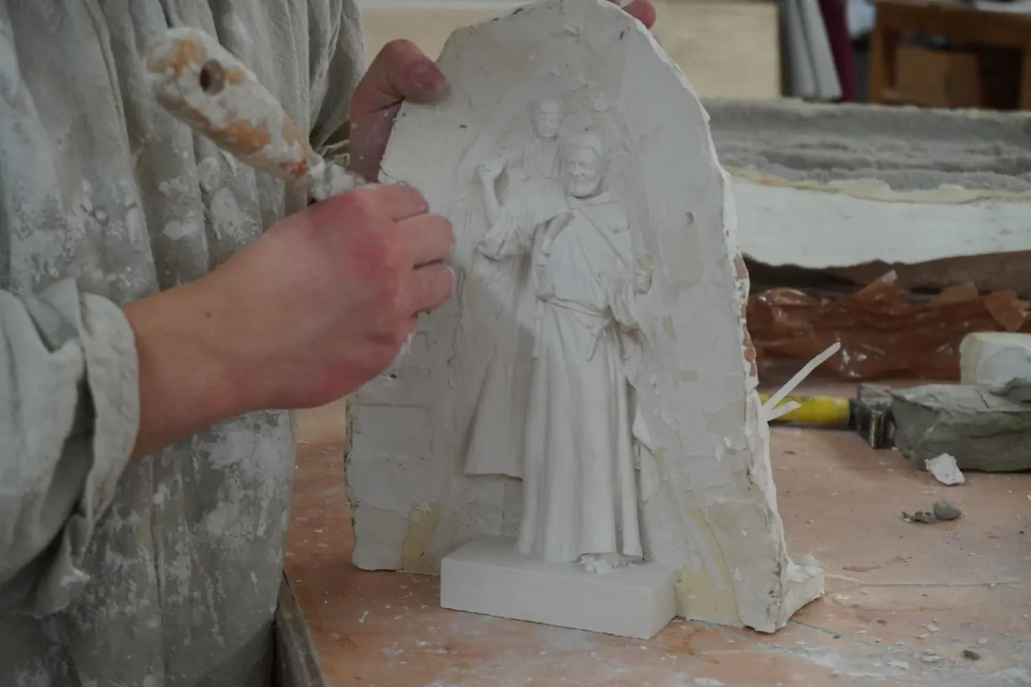 Spring 2023: I was in the middle of my master’s degree at the School of Sacred Art in Florence and I had two friends who were getting married, one in April and the other in May. I decided to make a statue and give it to them as a wedding gift.