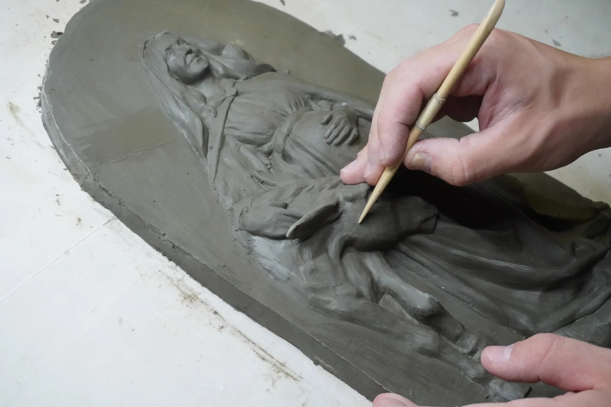 Notre Dame de l'Attente en bas relief : ma démarche